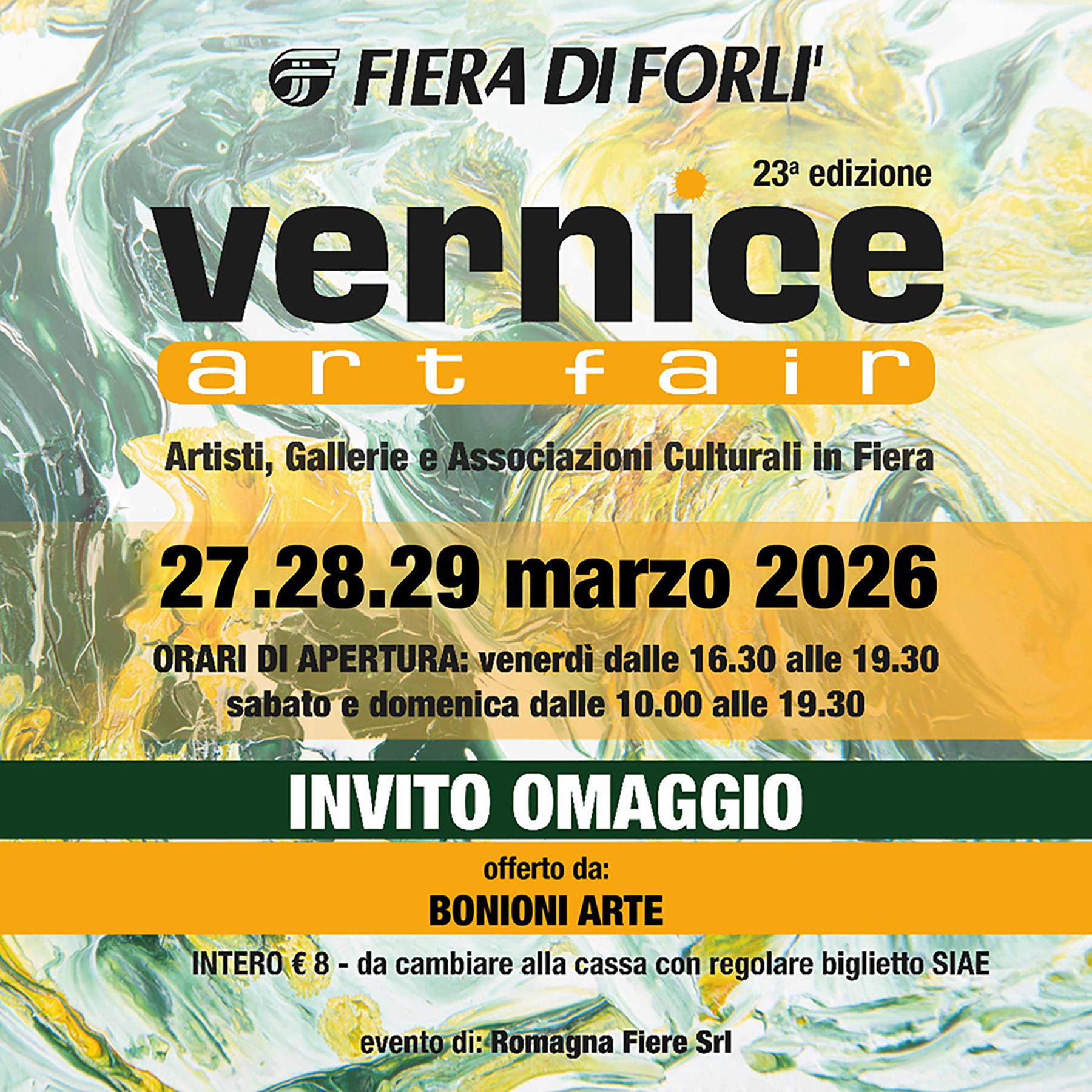 La Vernice Art Fair 2026, in programma dal 27 al 29 marzo 2026 presso la Fiera di Forlì (via Punta di Ferro), rappresenta uno degli appuntamenti più attesi nel panorama artistico nazionale. Nata per valorizzare il lavoro di artisti, gallerie e associazioni culturali, la manifestazione continua a crescere anno dopo anno grazie alla sua attenzione per la scoperta di nuovi linguaggi e talenti.
